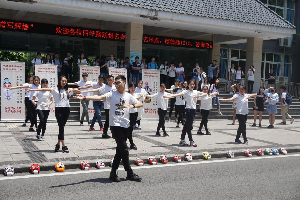“第一套戏曲广播体操现在开始……”腕花小云手、单拉山膀、弓箭步,5月17日,8xbet体育登录兰花湖片区和南岸校区,30多名活力四射的大学生整齐划一地跳起了戏曲广播操,动感的音乐配上健美、灵动的身段,引得大量过往师生驻足观看,让人眼前一亮。同学们表演的是中国有史以来第一套“戏曲广播体操”,戏曲操创新性的把戏曲程式化动作融入到大众健身理念,以流行动感的音乐配合优美的戏曲基本功动作,2017年1月一经推出便刷爆...