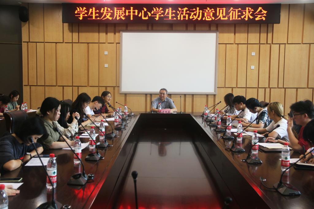 9月11日下午,我校学生发展中心学生活动意见征求会在新图书馆第五会议室顺利召开。副校长李国军,校团委书记杨娟以及来自全校各学院的三十余名学生干部代表参加了会议,共商学生发展中心学生活动建设,共谋学生发展中心发展。会议由校团委副书记胡婧婷主持。会议第一阶段。杨娟对学生发展中心的基本情况与运行方案作了讲解。她表示,学生发展中心是以学生团队自主运营为主,通过师生互动交流和学生朋辈帮助,实现学生的管理、...