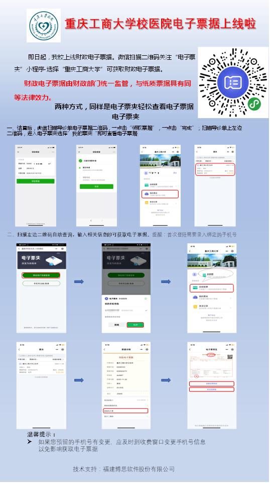 按照重庆市财政局、重庆市卫生健康委员会、重庆市医疗保障局下发的《财政部、国家卫生健康委员会、国家医疗保障局关于全面推行医疗收费电子票据管理改革的通知》(财综﹝2019﹞29号),校医院各区将于2021年1月1日起,门急诊收费均启用医疗收费电子票据。医疗收费电子票据由财政部门统一监管,与纸质票据具有同等法律效力,可打印作为报销原始凭证使用。如您预留的手机号有变更,请及时到收费窗口变更手机号信息,以免影响电子票据获取。