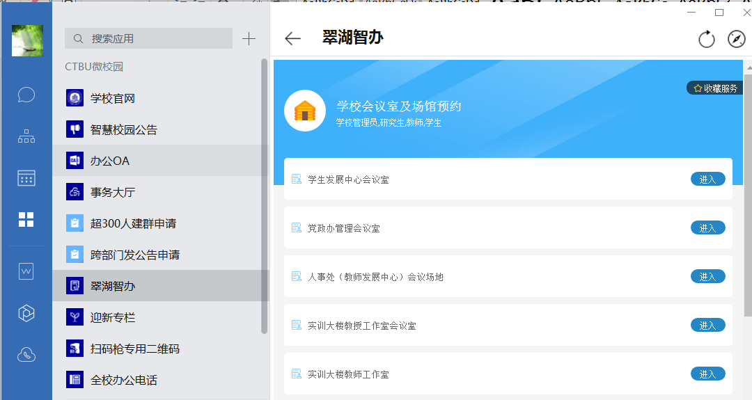 通过8xbet体育登录企业微信平台--翠湖智办--服务中心--学校会议室及场馆预约—实训大楼教师工作室预约。