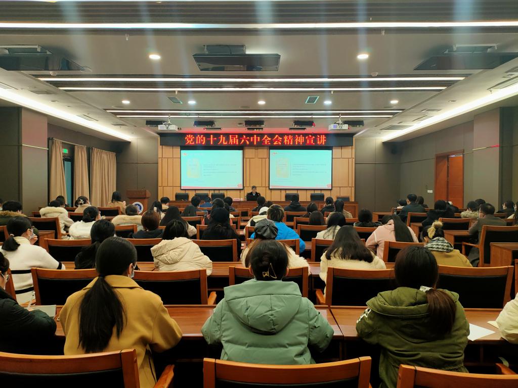 12月20日,校长孙芳城为会计学院师生宣讲党的十九届六中全会精神。会计学院班子成员,以及学生党员参会。