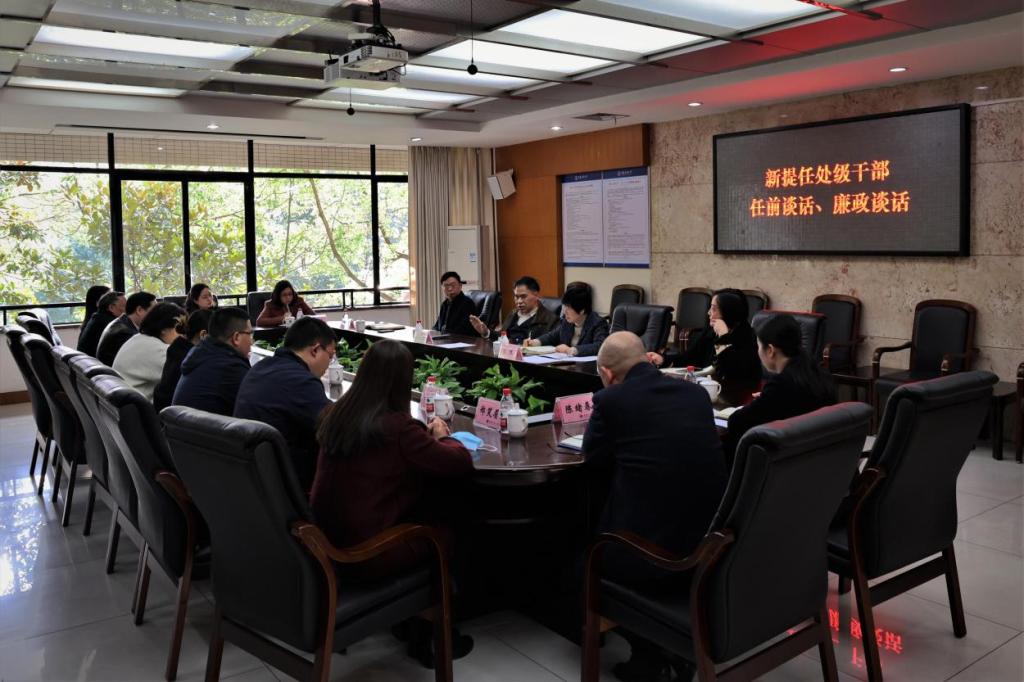 12月22日下午,学校党委召开新提任干部任前谈话、廉政谈话会。学校党委书记李志雄,党委副书记宋豫,党委常委、纪委书记、监察专员周航,党委常委、党委组织部部长郑夕春,新提任处级干部参加会议。会议由宋豫主持。