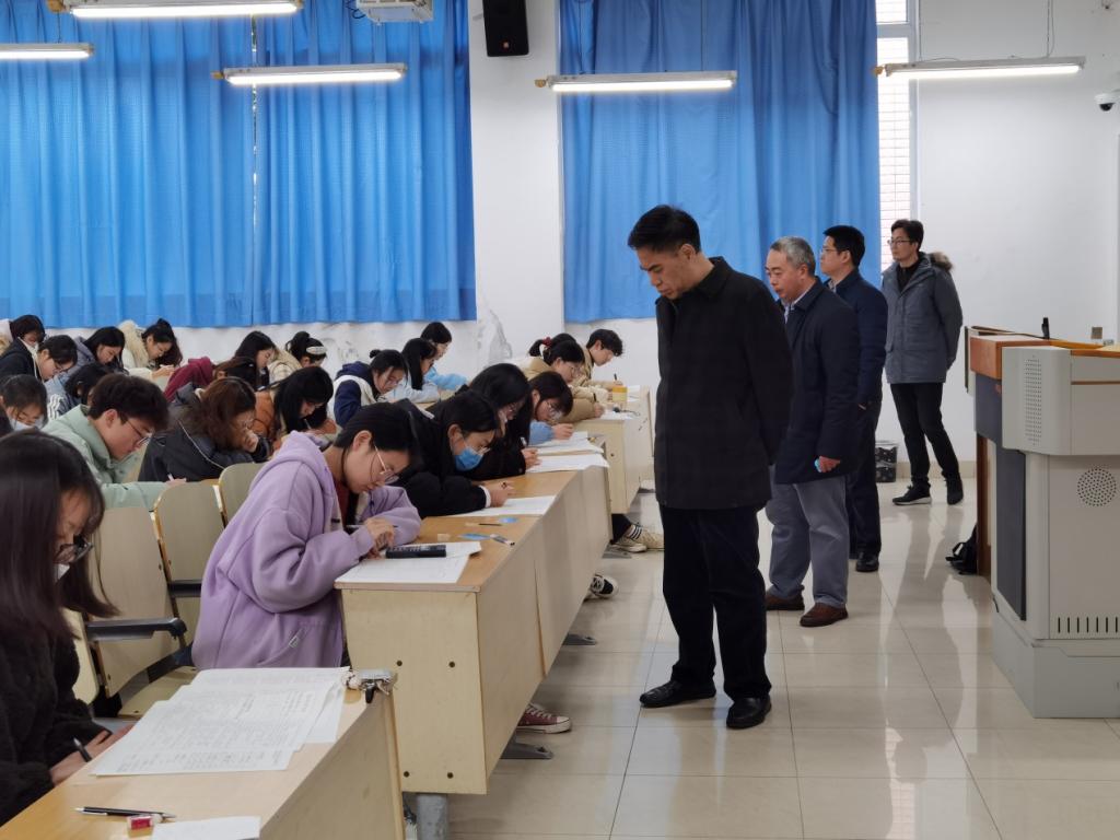 1月4日,孙芳城一行到博智楼考点检查本科生期末考试情况。孙芳城逐一查看了考场情况,详细询问本学期期末考试的总体安排,查验学生证件,并向监考老师表示感谢。孙芳城对考场秩序表示满意,同时提出四点要求:一是要求教务处做好后续考试的安排,严格考风考纪。二是督促各学院提醒监考老师按时到位,避免出现监考老师迟到、忘记监考。三是让辅导员督促学生按时参加考试,及时联系开考后未到的学生,尽力避免学生缺考。四是督促后勤部门维护好考场内的相关设施,做好考生的后勤保障工作。