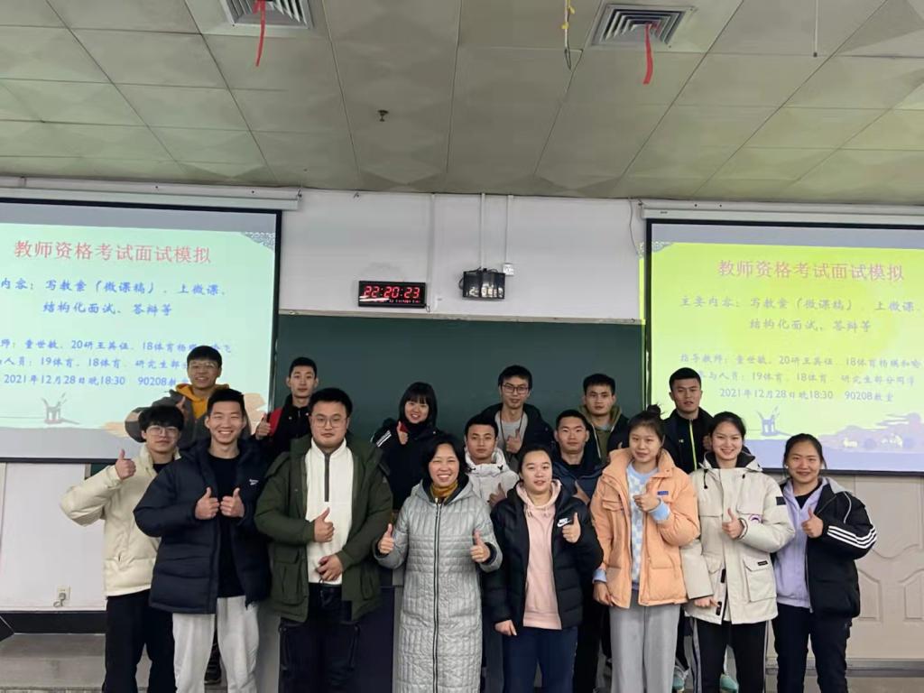 1月6日,获评2021年8xbet体育登录师德先进个人的体育学院童世敏教授为即将参加教师资格面试学生进行模拟训练与专场指导,同时邀请了多位研究生、本科生做经验交流分享。