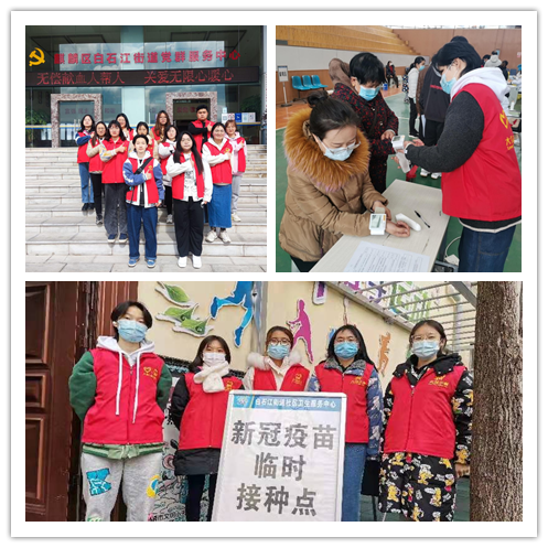 艺术学院青年志愿者服务队曾宏伟、欧阳环宇等志愿者到社区新冠疫苗接种点开展志愿服务。他们穿上红马甲,带好口罩,不惧疫情、不怕寒冷,每天坚持在疫苗接种点为前来接种的老人、孩子服务,也会为医护人员递上一杯热水,尽一份绵薄之力。