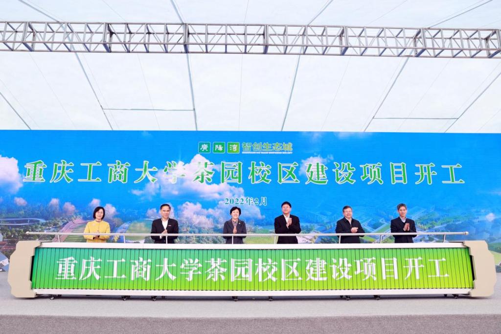 2022年2月28日上午,我校茶园校区建设项目开工仪式在广阳湾智创生态城正式开工。重庆市委常委、统战部部长李静,市委教育工委书记、市教委主任黄政,南岸区、重庆经开区有关领导,我校党委书记李志雄,党委副书记、校长孙芳城出席开工仪式。黄政主持开工仪式。