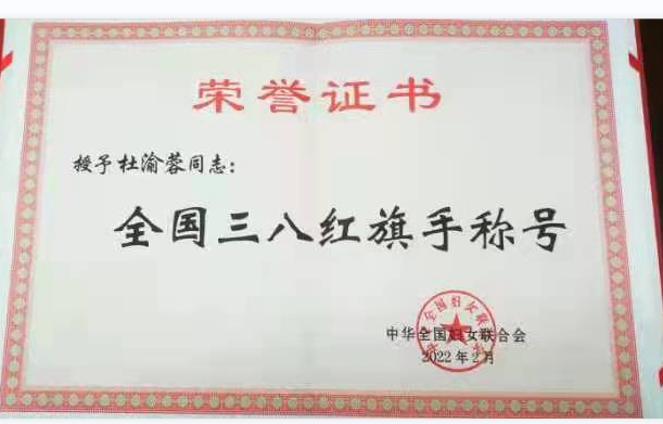 日前,全国妇联决定授予布茹玛汗·毛勒朵等10人全国三八红旗手标兵、王小云等300人全国三八红旗手、北京市市民热线服务中心协调督办处等200个单位全国三八红旗集体称号。其中,我校86级校友,重庆市江北区妇联党组书记、主席杜渝蓉被授予“全国三八红旗手”称号。