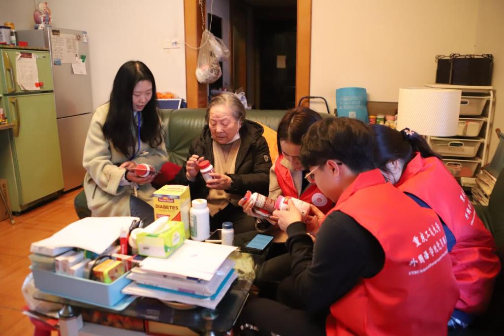 社区居民胡老师的孩子在国外,家中有不少国外寄回的药品,老人苦于不懂英文不知该如何使用,得知情况后同学们来到胡老师家中,将胡老师所有药品的用法及用途翻译成中文,为方便老人用药还将用药方法粘贴在药品外包装上。胡老师感动地说:“平时在家我都不敢随便吃这些药,现在有了这些中文注释,可帮我大忙了。”学生党员王仁伟表示,我是一名志愿者,更是一名党员,我愿意弘扬雷锋精神,贡献青年力量,发挥党员的先锋模范作用,用课余时间为广大社区居民营造整洁、温暖的环境,我觉得非常有意义。