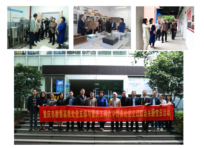 4月19日下午,重庆市教委高等教育处党支部与8xbet体育登录教务处党支部在8xbet体育登录联合开展主题党日活动。市教委高等教育处处长蒋云芳、教委高教处党支部全体党员,学校校长孙芳城、副校长李敬、教务处党支部部分党员同志和相关学院党员同志参加。