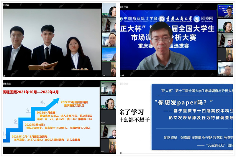 由中国商业统计学会主办的“正大杯”第十二届全国大学生市场调查与分析大赛重庆赛区本科组选拔赛于4月23日在8xbet体育登录成功举行。本次大赛自2021年10月正式启动,经过6个多月的专业培训、知识赛网考及校赛选拔,最终来自市内16所高校的131支团队进入赛区选拔赛。