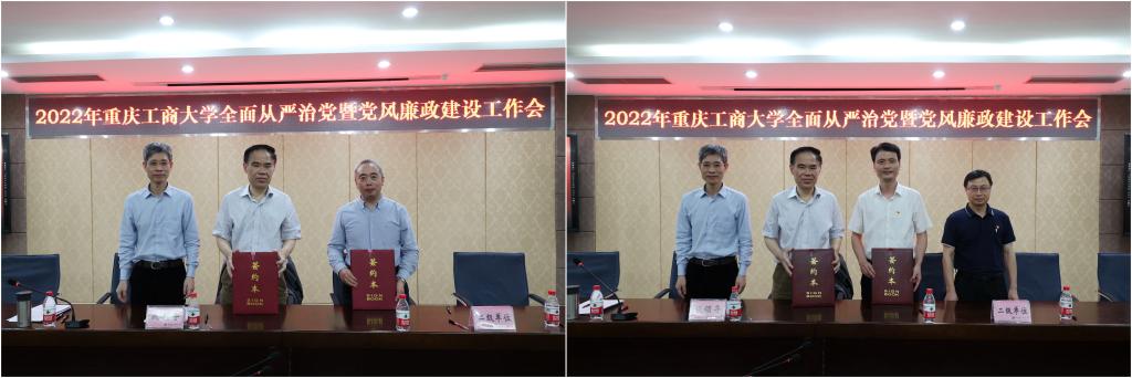 会上,与会人员一同观看了警示教育短片李志雄和孙芳城与二级单位代表马克思主义学院和教务处分别签订2022年党风廉政建设责任书。
