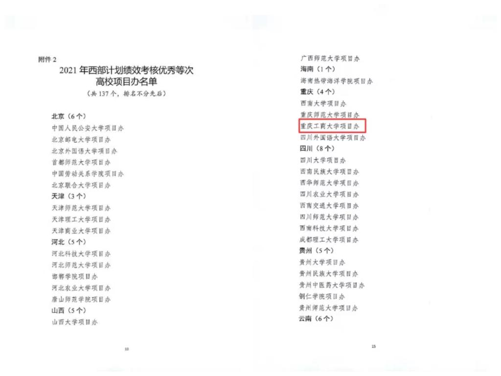 6月2日,全国大学生志愿服务西部计划项目管理办公室下发了《关于印发2021年西部计划绩效考核优秀等次、不合格等次县级项目办和高校项目办名单的通知》,我校获评高校项目办绩效考核优秀等次(全国共评选137个)。