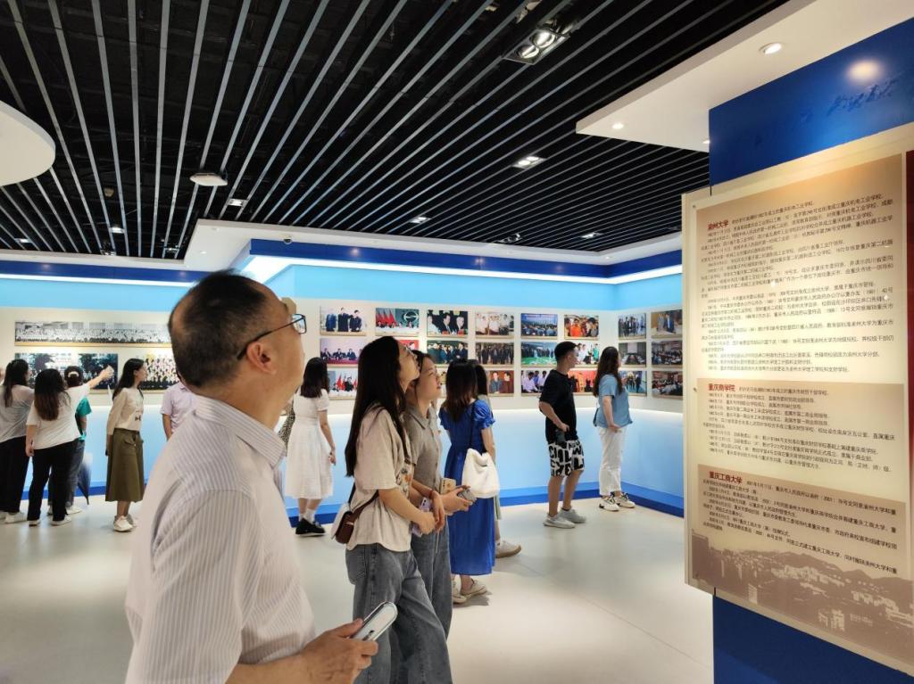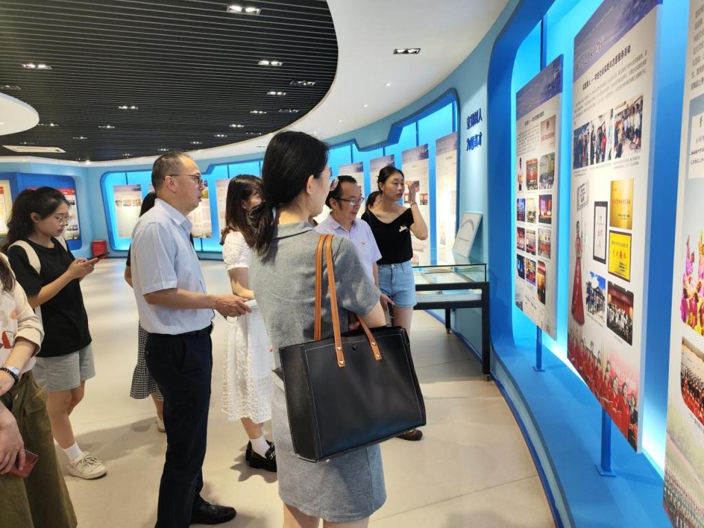 主题党日第二站,校史馆。升级改造后的校史馆焕然一新,信息化、科技感、互动性让党员们非常兴奋,大家在校史馆里移步换景,通过一张张照片、一段段文字、一件件实物、一个个地名和姓名,详细了解8xbet体育登录70年来的发展历程。在参观结束时,邓德敏为全体党员现场上了一堂微党课。他说,今天让大家来参观校史馆,就是让大家了解学校70的发展历程中,有艰辛、有汗水、有泪水;有成就、有鲜花、有掌声;这些都充分见证了一代一代重工商大人立德树人的初心使命,见证了一代一代重工商大人砥砺奋进的责任担当。同学们即将离开学校,大家要从学校的发展历程中汲取前行的力量,牢记使命,肩负责任,勇于担当,踔厉奋发。