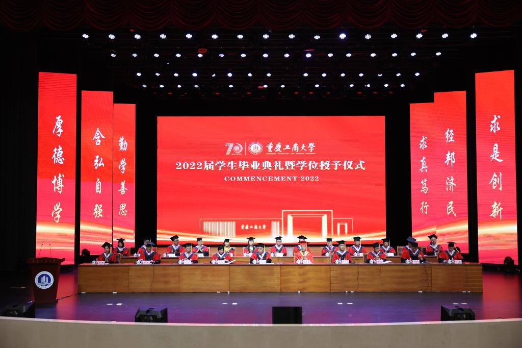 孙芳城饱含深情、充满关爱和期待地向毕业生们发表了题为《更好的时代值得更好的你》临别寄语。他向2022届全体毕业生致以最热烈的祝贺和最美好的祝愿,向家长和老师致以最崇高的敬意和最衷心的感谢。他表示,同学们生长于新时代,在“两个一百年”奋斗目标历史交汇期度过了大学时光,见证了第一个百年奋斗目标的实现;重温党的百年征程、共和国70周年奋斗取得的恢弘成就;见证了全面建成小康社会,历史性地解决了绝对贫困问题;见证了神州飞船托举载人航天走向新的阶段、第三艘航母下水,即将驶向一望无际的深蓝;见证了祖国“一带一路”行稳致远,举办冬奥会等国际活动,为推动构建人类命运共同体展现中国担当、中国智慧、中国力量。孙芳城回忆起同学们在大学度过的美好时光。他谈到,同学们果敢、坚毅,热爱生活、永不言弃,拥有了正确的世界观、人生观、价值观,夯实了专业功底,全方位提升了综合素质能力;用青春践行了“厚德博学 求是创新”的校训,展现了“含弘自强 经邦济民”的重工商大精神,诠释了大学生活的意义。孙芳城指出,走出学校大门,毕业生们就踏上了新的征程。更好的时代,值得更好的你!他希望,同学们心怀强国之梦,将个人理想融入伟大时代;心怀事业之志,以砥砺奋斗建功新的时代;心怀感恩之情,以赤子之心拥抱美好时代。孙芳城强调,七秩重工商,逐梦新时代。学校正乘着时代东风,努力建成商工融合、多科协同,全国知名的财经类应用研究型大学。伟大时代提供广阔舞台,重工商大毕业生共同出发,从南山翠湖,往星辰大海。他寄语毕业生此去前程似锦,相逢依旧如故。最后,他和全体毕业生约定,在学校70周年校庆日重返母校,共贺母校七十年华诞。