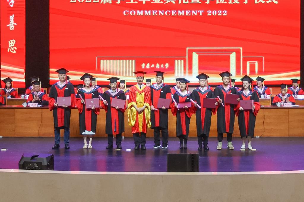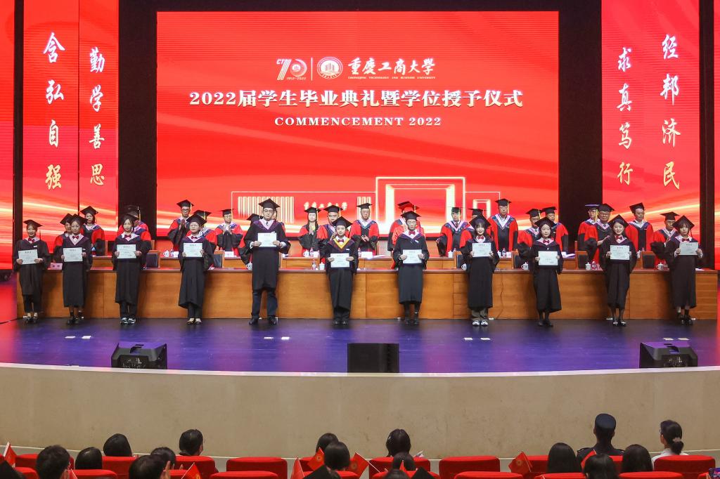 陈运超宣读《8xbet体育登录关于表彰2022届校级优秀毕业生的决定》《关于表彰8xbet体育登录2022届优秀毕业研究生标兵、优秀毕业研究生的决定》。校领导为优秀毕业生代表颁发荣誉证书。
