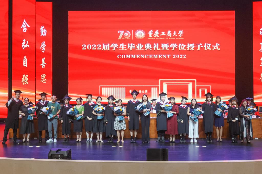 随后,师生们齐唱校歌《大路漫漫其修远长》。随着《星辰大海》旋律响起,学校领导和与会教师全体起立,用温暖的注视和闪闪的星光陪伴2022届毕业生们离开会场。2022届学生毕业典礼暨学位授予仪式落下帷幕。