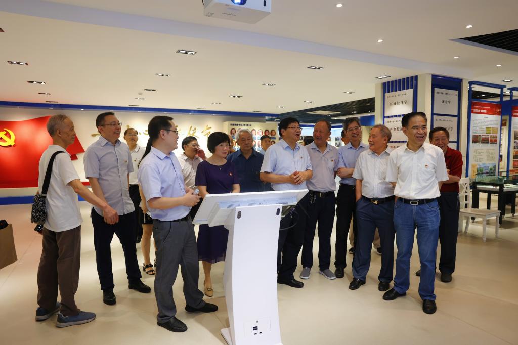 随后,老领导们在李志雄、孙芳城等的陪同下,进入校史馆参观。他们不时驻足流连,仔细观看图文并茂的校史展品。看着一幅幅照片、一件件实物展品,他们时而指点熟悉的历史画面,时而评说过往的骄人成绩。通过一幅幅泛黄的照片,一段段尘封的历史,一件件重要的实物,大家重温了学校筚路蓝缕的建设发展历程,各位老领导畅想建设学校的激情岁月,展望学校美好未来前景,激发了众人爱校荣校的使命感和自豪感。