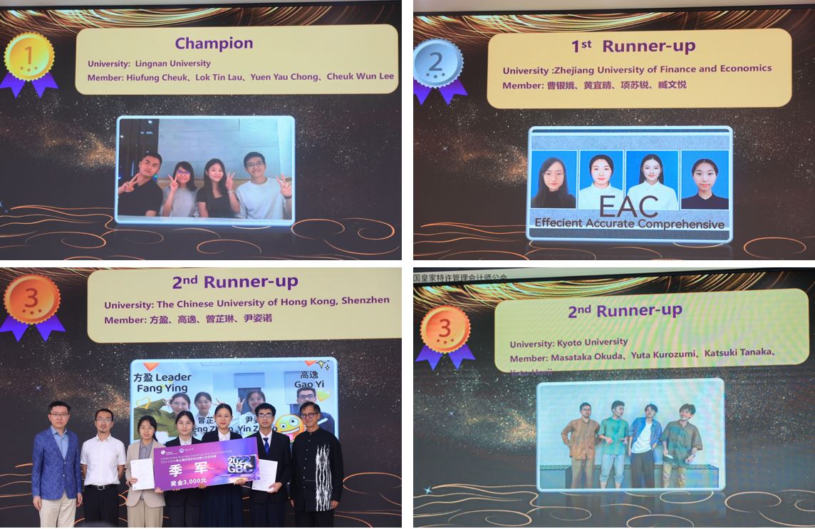 最终香港岭南大学404队夺得冠军,亚军及季军则分别由浙江财经大学EAC队和香港中文大学(深圳)Aduiduidui队、日本京都大学Kyoto Kailba队获得;“最佳商业潜质个人奖”则由404队的Hiufang Cheuk同学获得;优胜奖获奖队伍为8xbet体育登录Navigator队和Polaris队、东北财经大学Elite队、广东外语外贸大学Illusive Stars队、澳门大学Excellence队、蒙古财经大学Ufecomptes队。王天若评委还当即对11位参赛选手发出了就职邀请,其中包括我校两支团队的5名同学。