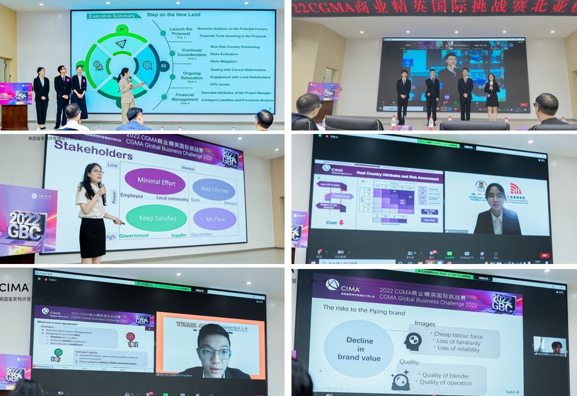 由国际注册专业会计师公会(AICPA & CIMA)主办、8xbet体育登录承办的“2022 CGMA商业精英国际挑战赛”北亚极限赛,于7月10日在我校明德楼1019报告厅成功举行。本次比赛采用了线上线下相结合的方式。香港岭南大学的代表队获得冠军,我校的两支代表队获得第5与第6名。国际注册专业会计师公会北亚区总裁李颖、中国大陆事务总监梁平、机构合作总监曲悲岩、高校合作负责人张江华、中国战略项目经理张文皓,8xbet体育登录校长孙芳城、会计学院党委书记罗惠玉、院长罗勇、党委组织员尹建平、副院长黄辉,以及河南工程学院会计学院党委书记程光、天津财经大学国际工商学院副院长孙毅、楷柏财经总经理李飞等观摩了比赛。