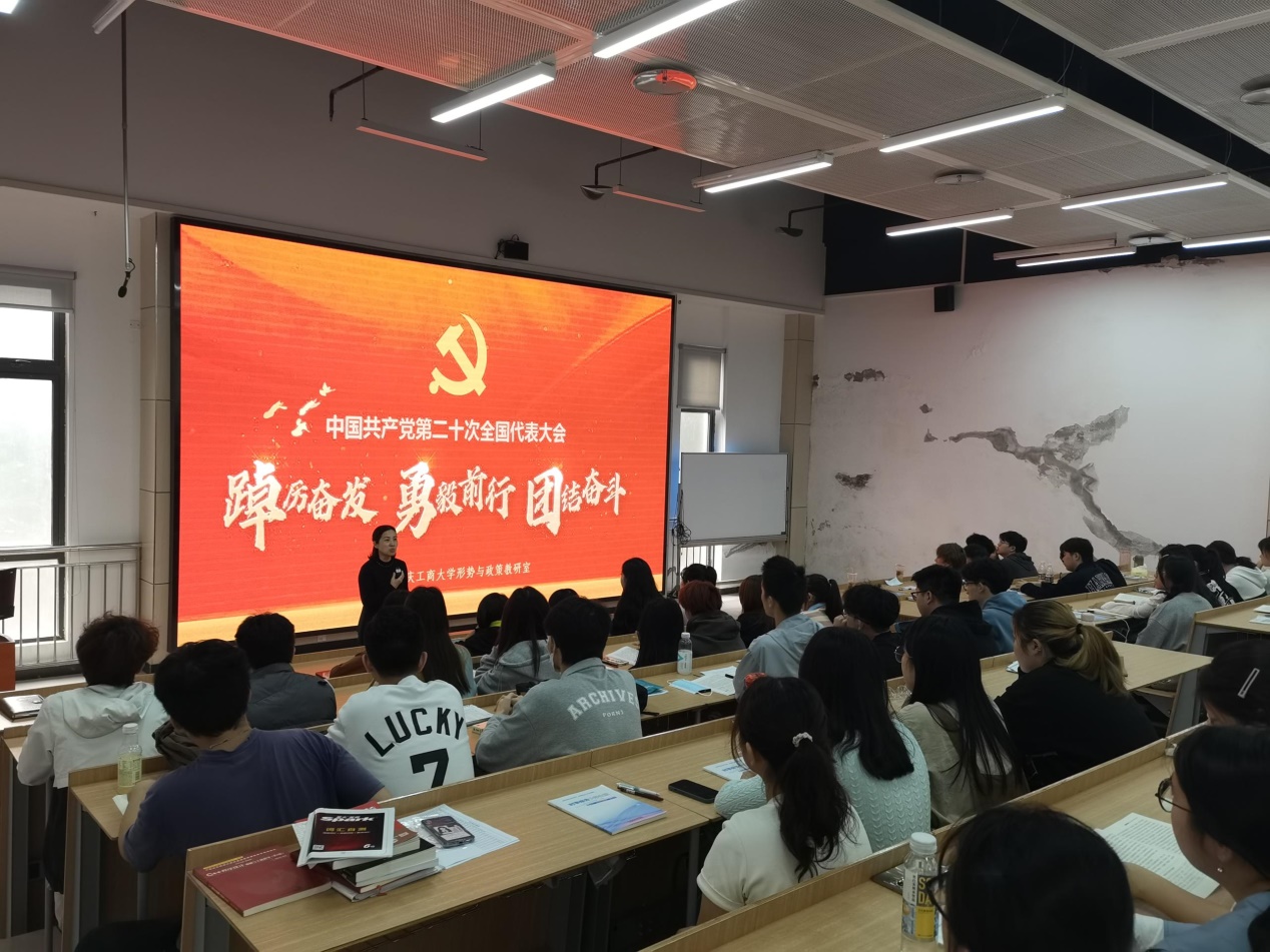 柏群首先通过丰富生动的实例讲解了党的二十大的会议主题和重要意义,并对会议内容进行详细梳理,然后就会议的十五个方面进行了深入浅出的讲解,并在课上和同学们进行了交流互动,帮助同学们学深悟透党的二十大精神。
