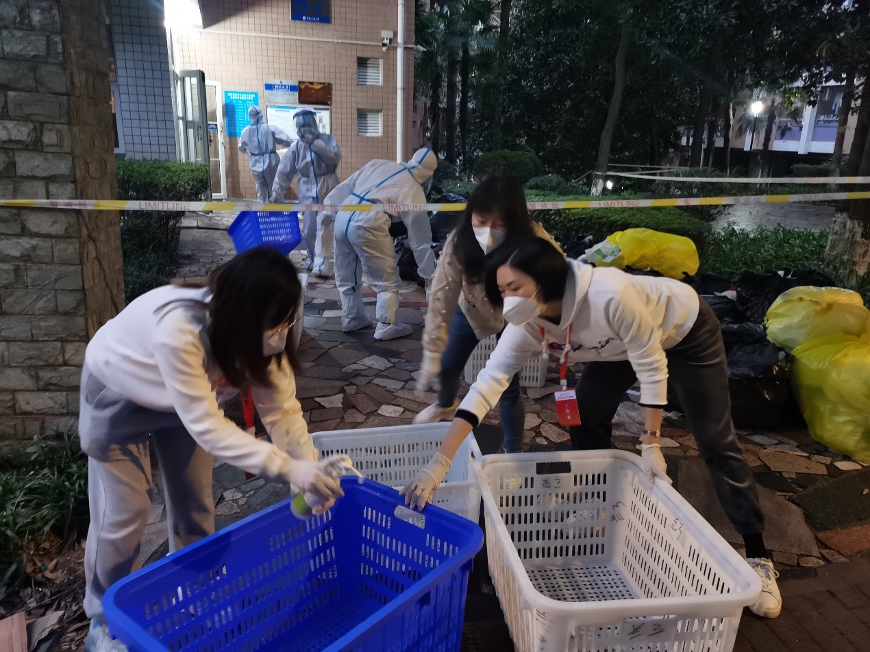 “同学,谢谢你配合学校疫情防控工作,吃饭了!”为了让隔离在寝室的同学们及时吃上饭、吃饱饭,相关学院迅速组织教职工志愿者为同学们提供送餐等服务。