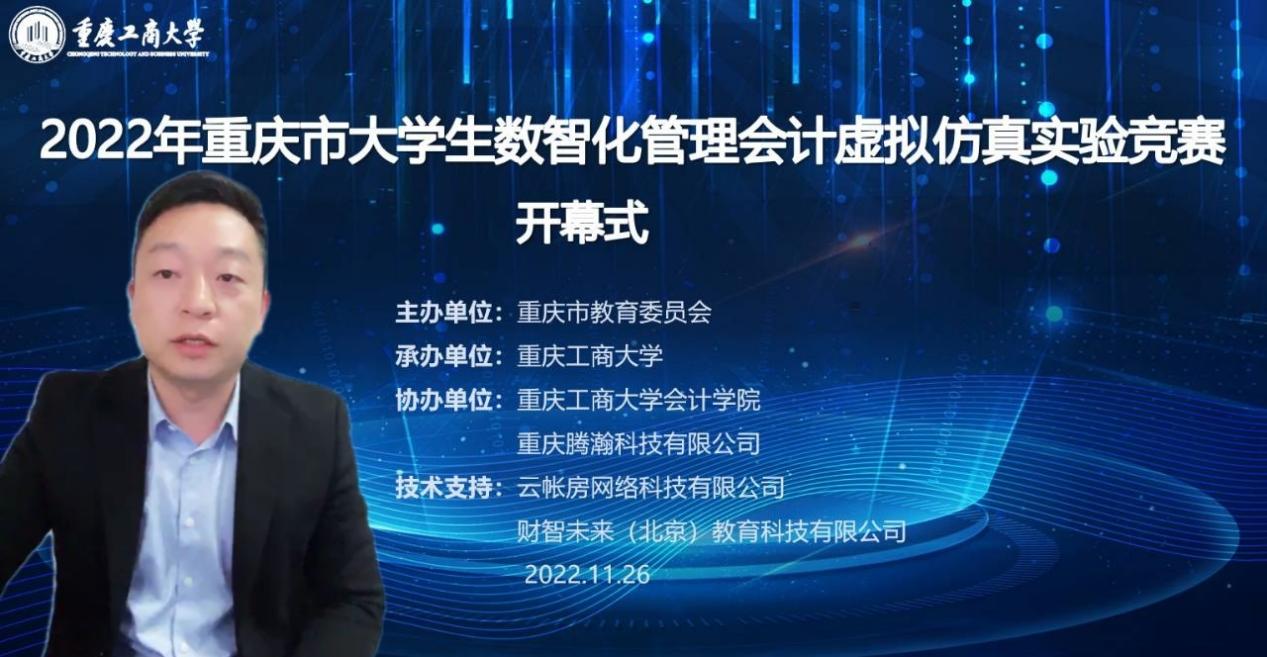11月26日,由重庆市教育委员会主办,8xbet体育登录承办,重庆腾翰科技有限公司、8xbet体育登录会计学院协办的重庆市大学生数智化管理会计虚拟仿真实验竞赛决赛顺利举办。受疫情影响,本次决赛采取在线方式进行。学校党委常委、副校长赵骅,重庆市教委高教处调研员哈宁武,教务处处长骆东奇,会计学院党委书记邓德敏、院长罗勇,重庆腾翰科技有限公司李银海总经理等参加了开幕式。开幕式由罗勇主持。