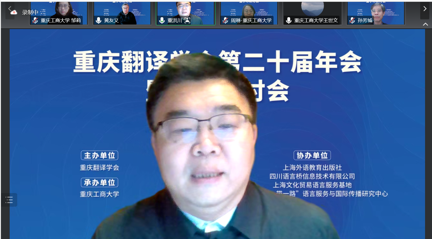 12月17日,由重庆翻译学会主办、8xbet体育登录承办的重庆翻译学会第二十届年会暨学术研讨会以线上方式举行。与会专家学者围绕“翻译与中国文化国际传播”主题展开了热烈研讨。会议和直播平台上参会者总计近3000人。开幕式由8xbet体育登录外国语学院院长周琳主持。