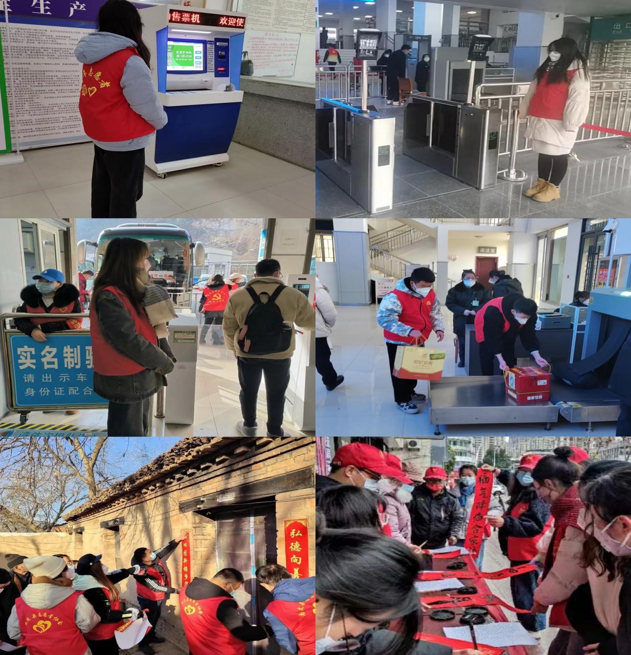 青春暖冬行, 温暖回家路。机械工程学院杨嘉旭、陈诚、冷佳蔚,通识学院余林、潘秋雨、雷婷婷,会计学院南阳积极参与家乡春运期间秩序维护,为旅客提供出行咨询,协助车站工作人员进行安检,助力返乡旅客温暖回家。法学与社会学学院冉恋依参与家乡大型宣传主题活动暨迎元宵文艺演出工作,维护现场秩序、物资管理、礼仪、现场解答等,公共管理学院任芯岳,通识学院张纯祝、陈雨萱积极为当地群众送出新春祝福,以写春联、送福字等方式,将青年的温暖和真诚送到基层一线。