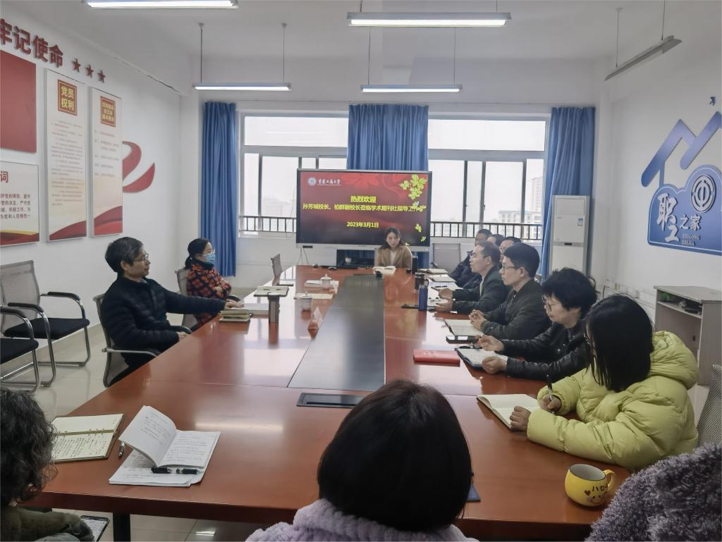 3月3日上午,校党委副书记、校长孙芳城,校党委常委、副校长李国军带领党政办、学生处、后勤处相关负责人到江北校区调研指导工作,通识学院(江北校区管委会)党政班子成员、专职组织员、科级干部、支部书记和全体辅导员参加了调研会议。