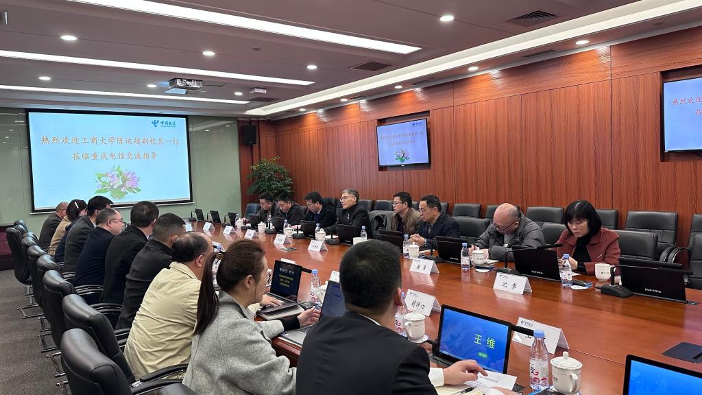 陈运超一行首先参观中国电信展厅,听取了中国电信发展史及现有主营业务介绍,并召开座谈会。座谈会上双方就智慧校园建设、校企合作、人才交流、毕业生就业等事项进行了充分交流。中国电信重庆公司表示,近期将组织下属公司一起赴学校举办专场招聘会。