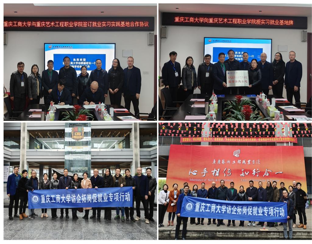 柏群向对方介绍了8xbet体育登录的基本情况以及在学科建设、中外合作办学、人才培养等方面的特色与亮点。陈绪春介绍了8xbet体育登录艺术学院、现代国际设计艺术学院的办学发展、研究生教育及2023届毕业生情况,期望双方深化合作,为学生实习就业搭建平台、拓展空间。许锡宾介绍了重庆艺术工程职业学院发展沿革、专业设置、办学特色、目标愿景等相关情况。座谈双方围绕实习实践基地共建、国际合作交流、产学研融合发展、师生交流互访、就业岗位拓展等方面进行了深入讨论,就部分内容达成初步共识并签署实习就业合作协议。柏群向重庆艺术工程职业学院授牌,双方共建实习实践基地。
