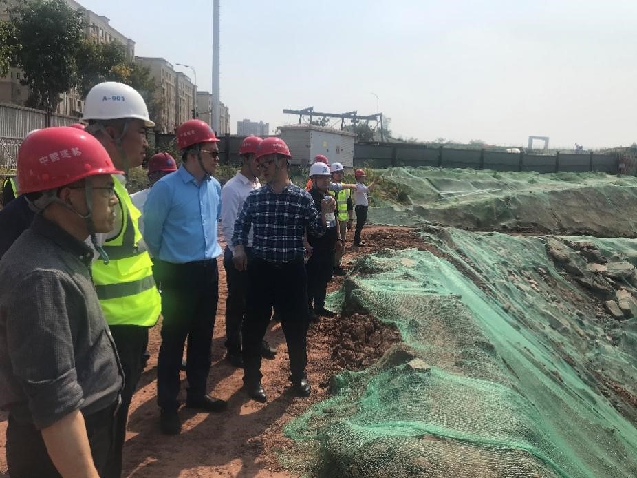 温涛一行首先对茶园校区项目施工现场进行视察,施工单位详细介绍了各建筑物坐落情况、建设进度、质量保障和人员安全等相关情况。