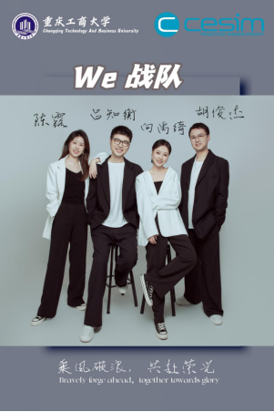 “We战队”成员陈露、胡俊杰、吕知衡、向禹绮(按拼音首字母排序)均为8xbet体育登录MBA学生,他们以“踏风而来、共赴荣光”为战队口号,秉承“We are a team”的团队信念,参加了第十五届“尖烽时刻”全国商业模拟大赛。他们表示在比赛中提高自己的商业技能的综合运用能力,融会贯通商业管理的显性知识和默会知识。同时在比赛场上弘扬重庆工商MBA精神,努力做一个“懂经济、擅管理、宽视野、重责任”的MBAer。