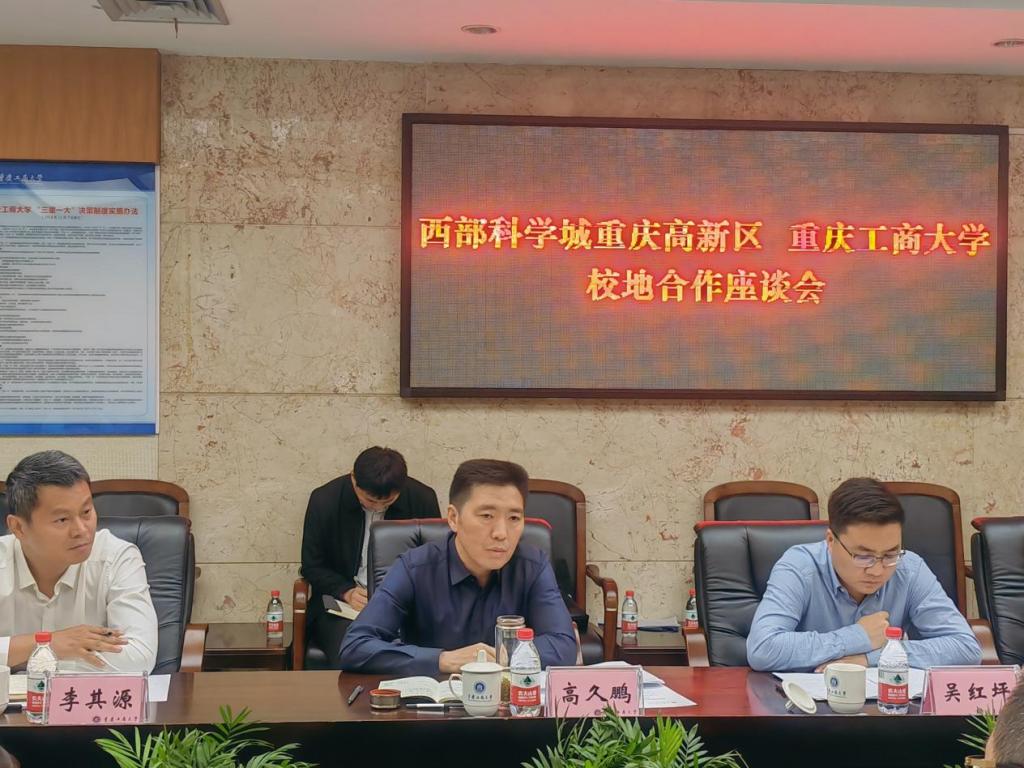 5月8日上午,西部科学城重庆高新区管委会副主任高久鹏一行到我校就深化校地合作工作及进一步推进重庆金融科技研究院建设举行座谈会。座谈会由副校长柏群主持,校长温涛出席会议。高新区财政局、科创局、高新产业发展有限公司相关负责人,学校党政办、科研处、国内合作处相关负责人,金科院院务管理层参与座谈。