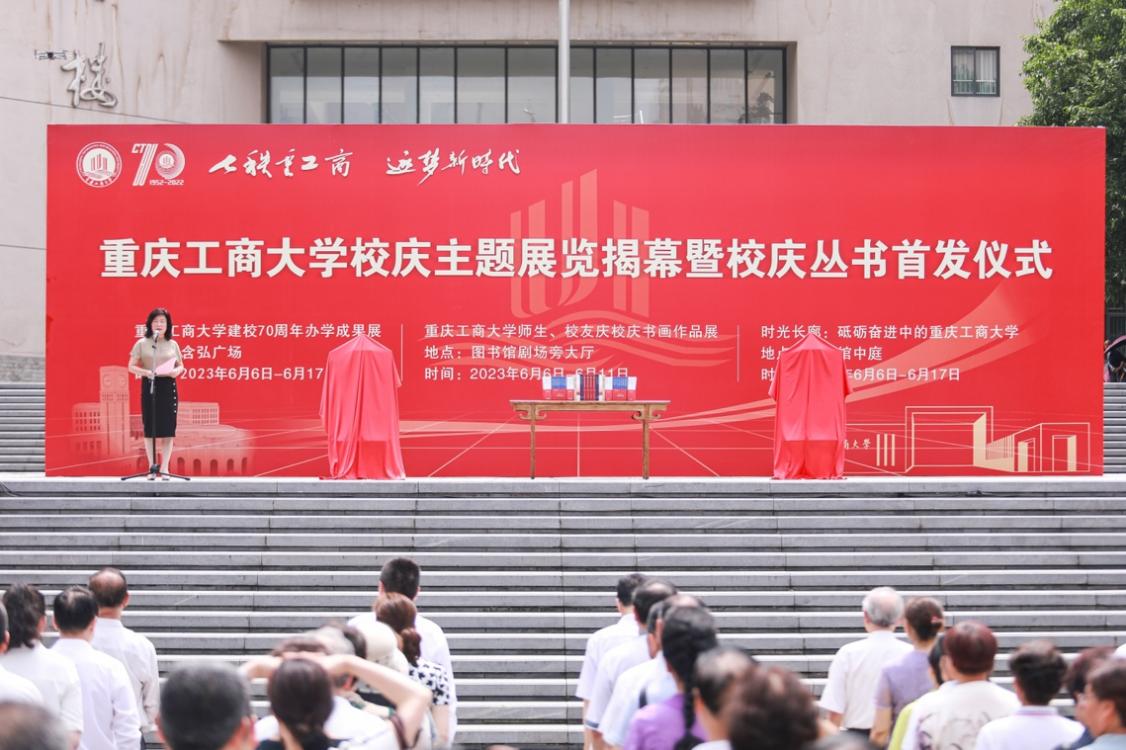 6月6日上午11点,学校在含弘广场隆重举行“七秩重工商 逐梦新时代”校庆主题展览揭幕暨校庆丛书首发仪式。学校党委书记李志雄,校长温涛,党委副书记宋豫,党委常委、副校长陈运超、张波、李国军、赵骅等出席仪式。原重庆商学院党委书记张柏村,原渝州大学校长戴宏民,原8xbet体育登录党委书记周希贤,原8xbet体育登录校长王崇举,原8xbet体育登录副校长廖元和、黄朗和离退休教职工代表受邀参加仪式。此外,学校各二级单位负责人、教职工代表、校友代表和学生代表也参加了仪式。仪式由宋豫主持。