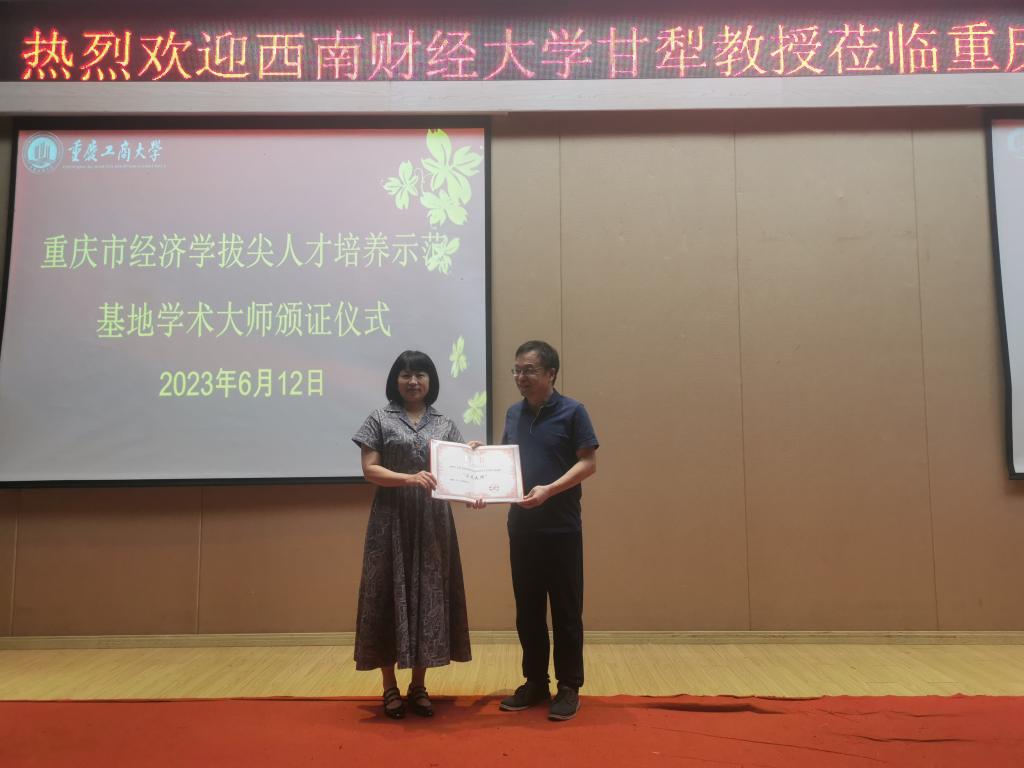 第二阶段,学校聘请甘犁教授为重庆市经济学拔尖人才培养示范基地“学术大师”,经济学院院长宋瑛为甘犁教授颁发聘书。宋瑛代表学校对甘犁教授加盟8xbet体育登录表示诚挚的欢迎,她表示,我校经济学拔尖人才培养示范基地正在推进国内外学术大师“导师制”人才培养模式,通过学术大师言传身教,接触学术理论和思想文化研究前沿,加强对拔尖学生的精神感召、学术引领和人生指导,着力培养一批学科基础扎实、创新能力突出、国际视野宽广的经济学拔尖学子。