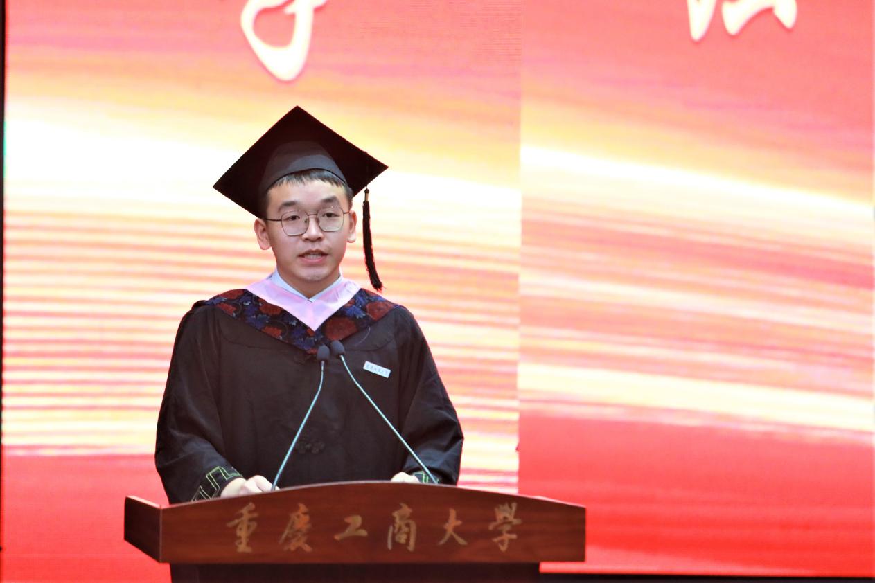 时代造就青年,盛世成就青年。2019级本科生钱世淋作为学生代表发表了毕业感言。他回顾了在8xbet体育登录四年的成长与收获,向辛勤培育他的母校、领导和老师表达了最真挚的祝福与感谢。他谈到,毕业生们即将拾起行囊整装启程迈向人生新阶段,以校友的身份在世界各地、祖国南北不同领域里奋斗。他表示,全体毕业生将牢记“厚德博学,求是创新”的校训,永葆“含弘自强,经邦济民”的重工商大精神,在各自的青春赛道跑出无愧于母校、无愧于祖国、无愧于人民、无愧于这个时代的好成绩,在以中国式现代化全面推进中华民族伟大复兴的新征程上贡献重工商大人的力量。