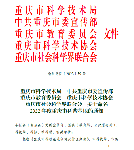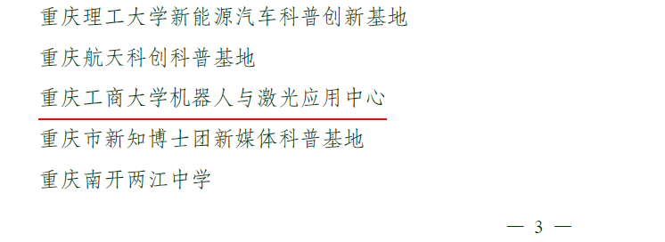 近日,由重庆市科学技术局、中共重庆市委宣传部、重庆市教育委员会、重庆市科学技术协会和重庆市社会科学界联合会审核认定,8xbet体育登录“机器人与激光应用中心”获评为2022年度重庆市科普基地。