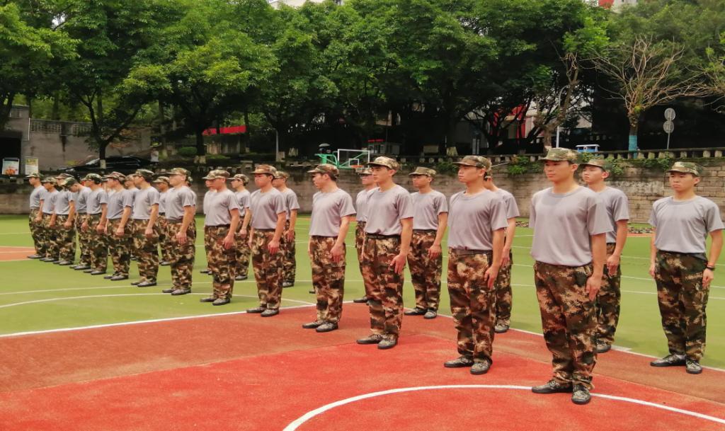在当空烈日下,运动场上一张张朝气蓬勃的面孔,一双双清澈坚定的眼神,一身身整齐划一的迷彩服,构成了一幅美丽的画卷。我们乐此不疲地一遍又一遍地做着练习,即便晶莹剔透的汗水已经沾湿了鬓角、从脸颊滑落,甚至流入嘴角,我们也始终没有生出放弃的念头。教官耐心细致地教我们左转、右转、向后转;下蹲、起立;戴帽子、摘帽子、折衣服等基本动作。在教学时,教官对我们动作的规范性要求十分严格,我们也积极配合教官,争取将每一个动作做到规范。而在休息之余,教官又格外亲切,风趣幽默的说话风格总是惹得我们捧腹大笑,不知不觉中,疲惫在我们脸上化作了笑容。