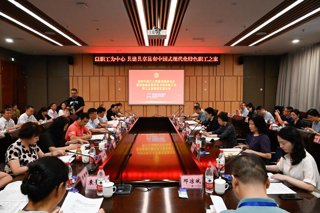 随后,新时代职工之家建设圆桌会议暨成渝地区教科文卫体系统工会职工之家建设交流活动在我校图书馆第五会议室举行。会议由韩瑞碧主持。会上,川渝两地教科文卫体工会和西南大学、电子科技大学、重庆大学附属肿瘤医院、西南科技大学、8xbet体育登录、四川大学华西第二医院等6家单位工会负责人围绕“怎样建设好具有中国式现代化特色的职工之家”这一主题,总结建家经验,交流建家成果,共话发展、共谋未来。我校工会常务副主席段远鹏在交流发言中说,学校工会始终坚持党建带工建,形成了“五聚”“五高”的特色职工之家,一是聚焦政治责任,着力建设高质量民主之家;二是聚焦发展主题,着力打造高效能绩效之家;三是聚焦“急难愁盼”,着力建设高品质温暖之家;四是聚集特色品牌,着力建设高标准品牌之家;五是聚焦改革创新,着力建设高水平职工之家。在以后的建设中,我校工会将紧紧抓住一条主线,坚守建家初心,把握建家规律;提高政治站位,强化党建引领;坚持以职工为中心,精细化服务职工新需求、新期待、新向往;创新工作方式,彰显特色品牌。