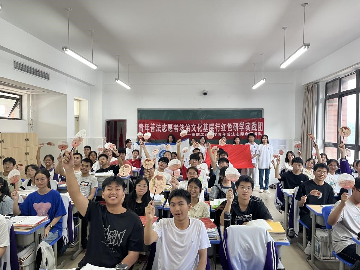 7月11日,法学与社会学学院联合重庆市忠县忠州中学共同开展以“长江之畔踏忠石,红色命脉永赓续”为主题的党史学习教育主题团日交流营活动。法学与社会学学院青年普法志愿者法治文化基层行红色研学实践团成员走进忠县忠州中学高二(28)班,通过讲故事和知识竞答的方式介绍了中国共产党在创建时期、大革命时期、土地革命时期、抗日战争时期、解放战争时期、社会主义建设时期以及改革开放时期各阶段标志性事件。实践团向高中生们充分展示我党百年奋斗的伟大历程和重大成就,引领广大青少年深刻感悟在以习近平同志为核心的党中央坚强领导下,新时代党和国家事业取得的历史性成就和发生的历史性变革,持续激发青少年爱党爱国爱社会主义的热情。