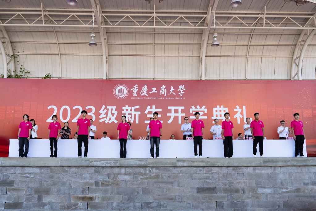 江北校区2023级本科新生代表、通识学院商务英语专业徐毅同学,南岸校区2023级环境与资源学院应用化学专业的蒋滟芯同学和研究生新生代表、会计学院2023级会计专硕周凯同学先后发言。他们向连日来为新生们辛勤付出的学校领导、老师、学长学姐致以诚挚的敬意和感谢,并代表全体新生对全校教职工致以节日的祝福。他们表示,进入CTBU是一个新的起点,作为即将接过历史接力棒的主力军,既要有民族复兴的使命,也要有奋发图强的信念,更要有慎思明辨的能力,还要有博学笃志的责任。怀揣梦想才能铸就未来,不懈奋斗才能成就人生。在接下来的学习中,要勇毅前行,做信念坚定的奋斗者;要锲而不舍,做自强不息的实干者。以青春之我、奋斗之我,绽放人生最美的姿态,努力践行“请党放心、强国有我”的青春誓言。