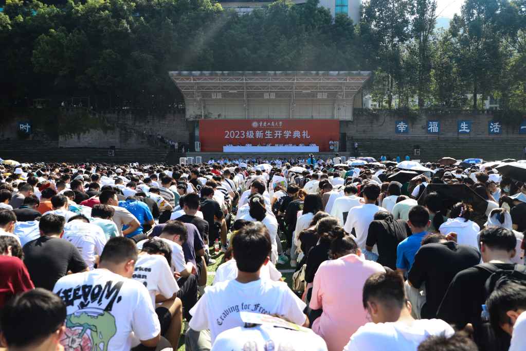 9月7日上午,我校2023级新生开学典礼分别在江北校区和南岸校区隆重举行,8000多名来自五湖四海的本硕博新生开启了重工商大生活的崭新篇章。学校党委书记李志雄,校长温涛,党委副书记宋豫,党委常委、副校长陈运超、张波、李国军、柏群、李敬,党委常委、纪委书记、监察专员张海燕,以及教师和专家代表、校友代表出席了开学典礼。此外,还有学校职能部门、二级学院、科研平台负责人,2023级新生辅导员以及全体2023级新生参加了开学典礼。典礼由李国军主持。