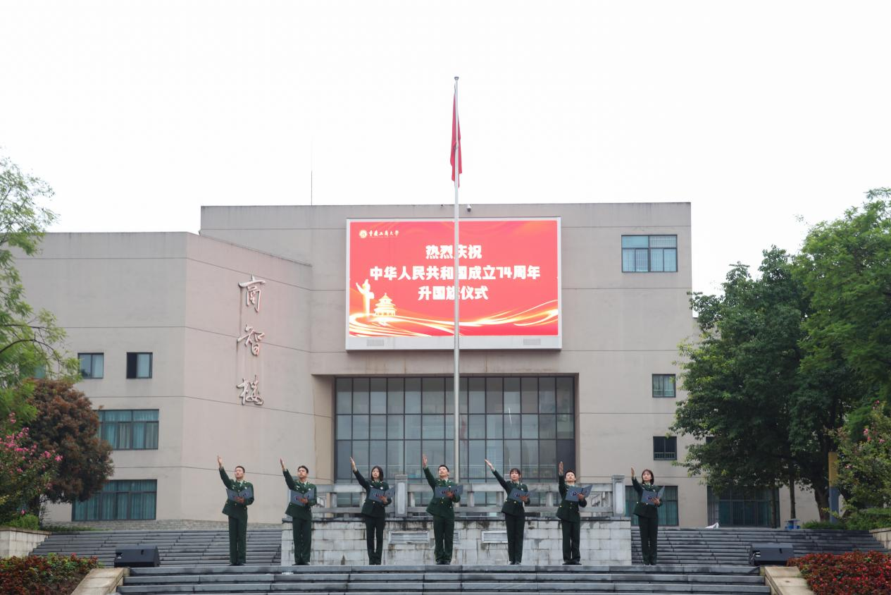 为庆祝中华人民共和国成立74周年,10月1日清晨,我校在含弘广场隆重举行国庆升旗仪式。