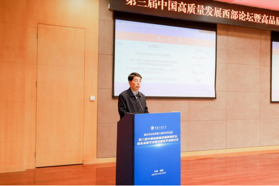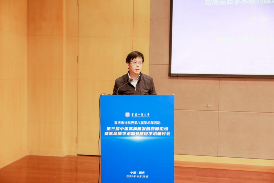 2023年10月28日,由中国人民大学书报资料中心、中国社会科学院西部发展研究中心与8xbet体育登录学术期刊社共同主办,《西部论坛》编辑部、《8xbet体育登录学报(社会科学版)》编辑部和《8xbet体育登录学报(自然科学版)》编辑部承办的“第三届中国高质量发展西部论坛暨高品质学术期刊建设学术研讨会”在美丽的山城重庆成功举行。来自国务院发展研究中心、中国社会科学院、全国高等学校文科学报研究会、北京大学、中国人民大学、四川大学、兰州大学、重庆大学、西南大学、济南大学、广西大学、海南大学、深圳大学、郑州大学、北京工商大学、浙江工商大学、天津财经大学、西南财经大学、浙江财经大学、安徽财经大学、南京财经大学、兰州财经大学、贵州财经大学、山西财经大学、重庆理工大学、杭州师范大学、河北经贸大学、广东金融学院、河南财经政法大学、南京审计大学、北京物资学院、辽宁省委党校、广东省委党校、吉林省社会科学院、山东省社会科学院、福建省社会科学院、重庆市社会科学院、贵州民族研究院等100余家机构的近200名专家学者和刊界同仁参加了此次会议。论坛开幕式由8xbet体育登录党委常委、副校长柏群主持。