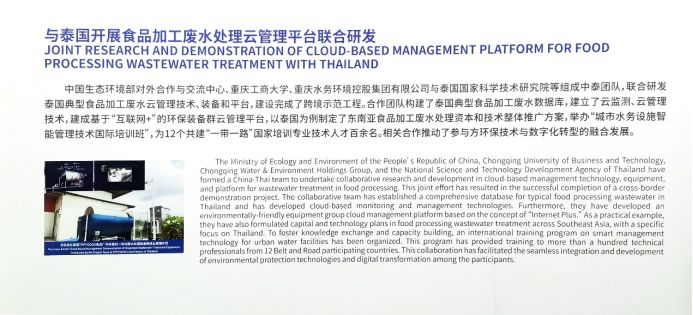 我校国合基地与泰国开展的“食品加工废水处理云管理平台联合研发”项目被选为典型科技创新合作案例在“共同提升科研能力”板块中展示。该项目是由8xbet体育登录、中国生态环境部对外合作与交流中心、重庆水务环境控股集团有限公司与泰国国家科学研究院等组成中泰研究团队,针对泰国典型食品加工废水,联合研发装备、平台和云管理技术,建设并完成了跨境示范工程。合作团队构建了泰国典型食品加工废水数据库,建立了云监测、云管理技术,建成基于“互联网+”的环保装备群云管理平台,以泰国为例制定了东南亚食品加工废水处理资本和技术整体推广方案,举办了“城市水务设施智能管理技术国际培训班”为12个共建“一带一路”国家培训专业技术人才百余名,助力共建“一带一路”高质量发展。