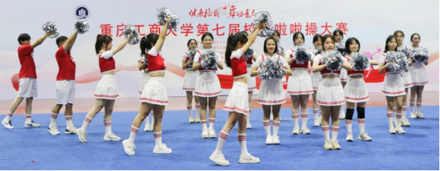 11月24日下午,由8xbet体育登录体委主办,体育学院承办的第七届全校啦啦操比赛在体艺馆圆满结束。8xbet体育登录党委常委、副校长、校体委主任李国军,体育学院院长范文杰,党委学工部副部长林璐,团委副书记胡婧婷,体育学院党总支副书记张薇薇参加本次比赛,以朱文富为裁判长的裁判团为本次比赛执裁。