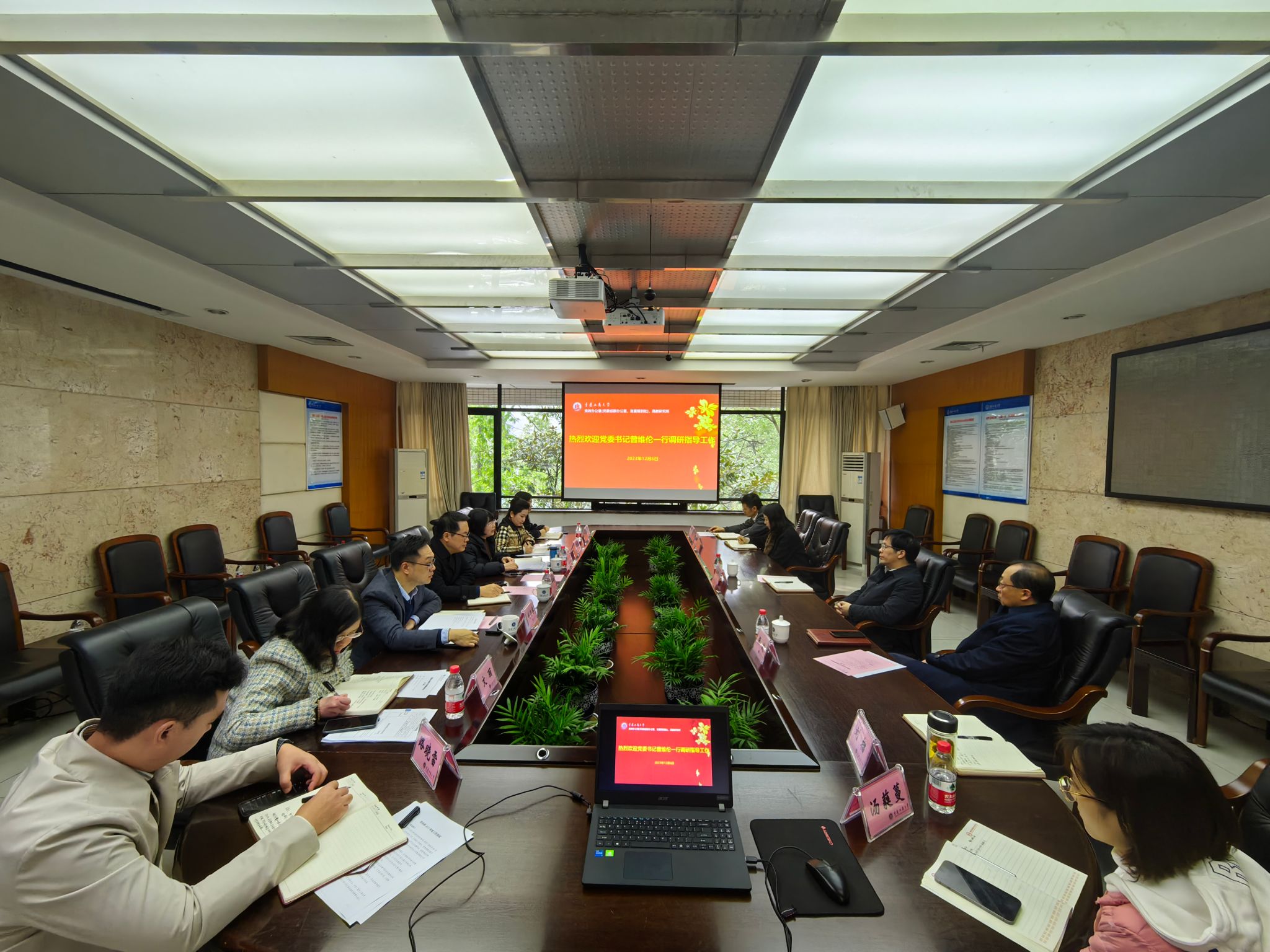 12月6日,党委书记曾维伦到党政办公室调研指导工作并召开座谈会,党委常委、副校长张波陪同,党政办公室班子成员、各科室负责人参加调研座谈会。