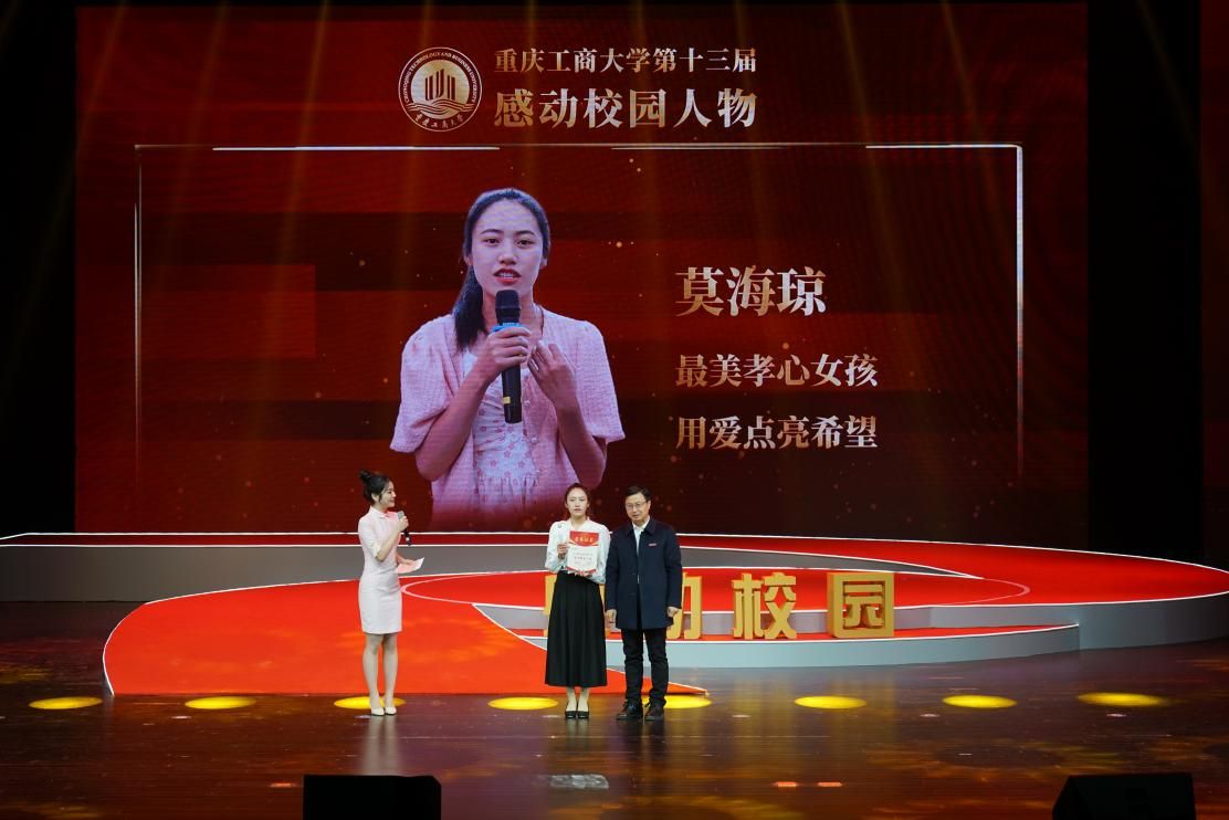 工商风采,榜样力量。12月8日下午,由学校党委宣传部、校团委主办,环境与资源学院、通识学院承办的8xbet体育登录第十三届“感动校园人物”颁奖典礼在学校剧场隆重举行。学校党委书记曾维伦,党委副书记宋豫,党委常委、副校长张波、李国军,党委常委、党委组织部部长郑夕春,党委常委、党委宣传部部长华杰,各职能部门负责人,评审委员会评委,各学院党委书记、院长,学院学生工作分管领导,教师代表以及学生代表等参加了颁奖典礼。