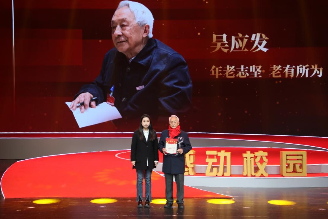 吴应发曾指导过的学生代表,2020级汉语言文学专业学生吴姿萱为他送上奖杯和证书
